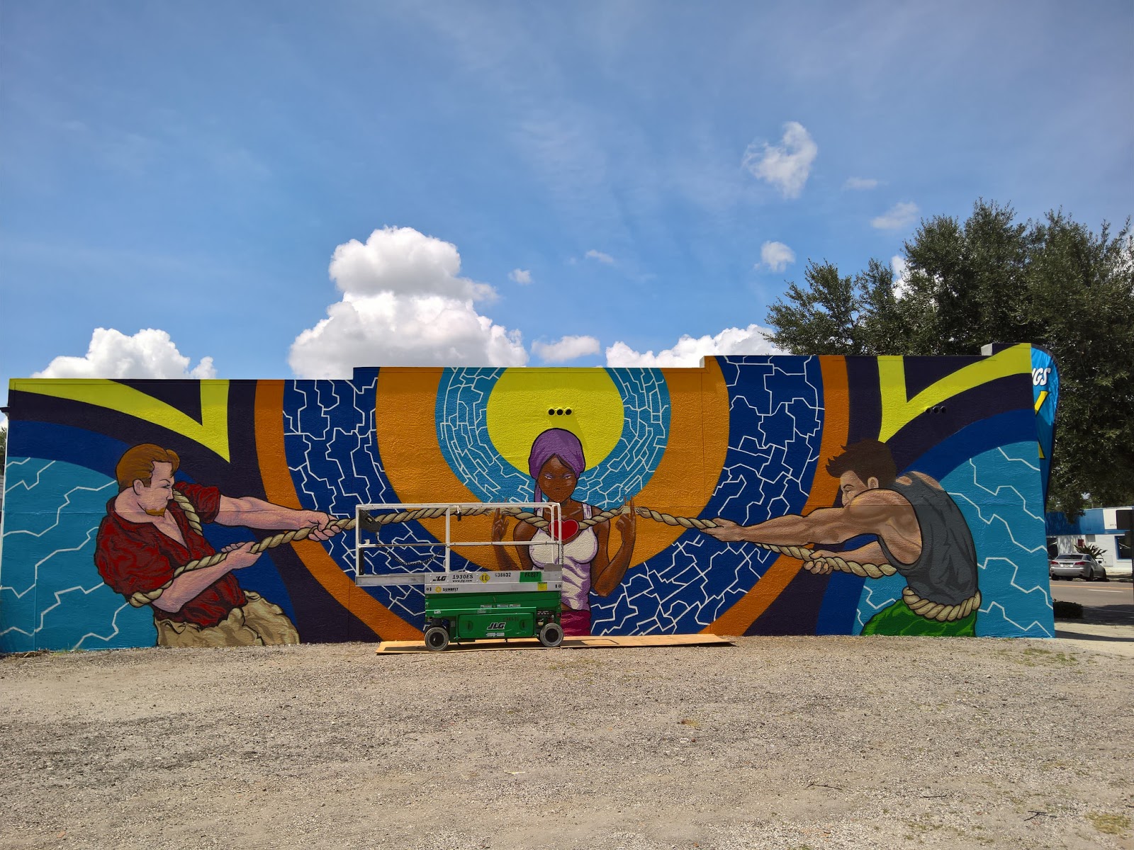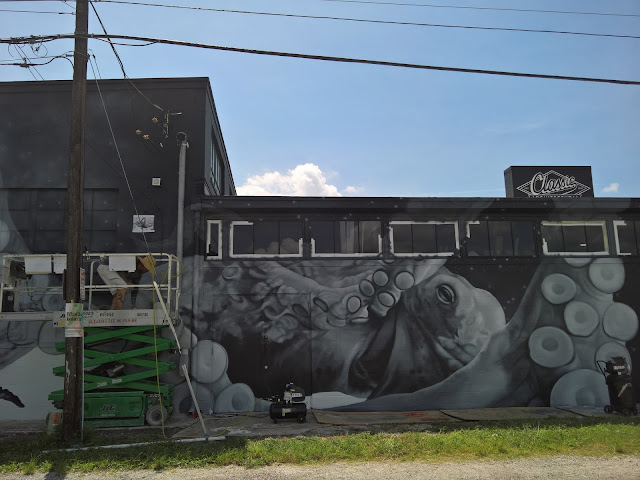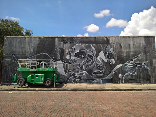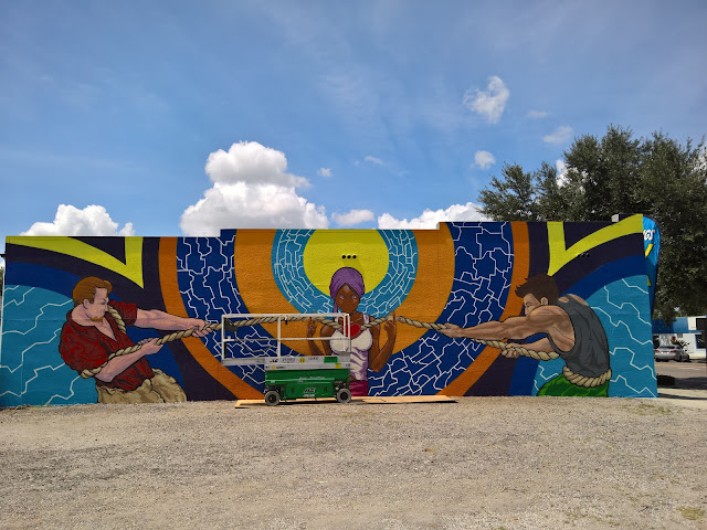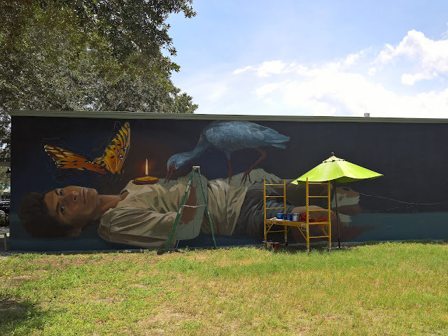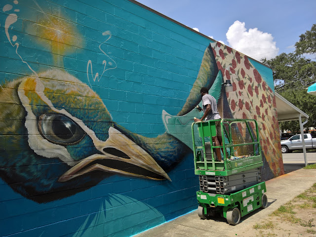 In the first two years of the festival, it has created dialogue and united the community, shown a colorful light on St Pete's creative and vibrant spirit and gifted the City with over 30 new murals. In 2016, the annual festival brought 17 artist together from San Francisco to Philadelphia and Hong Kong to Italy and everywhere in between to create murals in St Pete that are at times whimsical, provocative, thought provoking and always eye-catching. My photos of the murals (many of them in progress) follows this text.