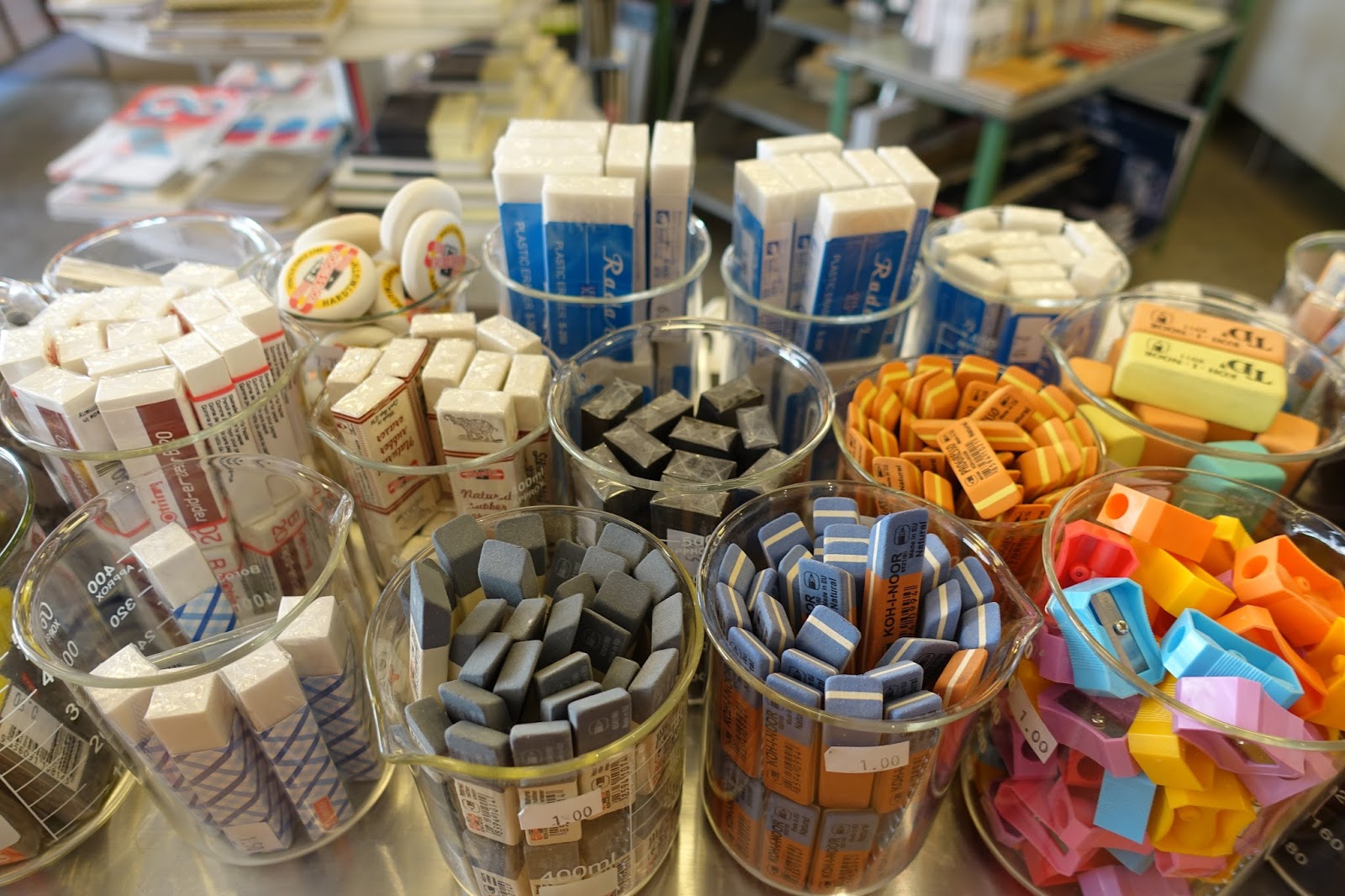 A Little Shopping. We continue our search for cool bookstores. Will update on the next blog. This week we found THE COOLEST STORE for pencil, pen, and paper junkies like me. It's called Papeterie Nota Bene on Avenue du Parc. We found it on one of our walks after dinner. It is one of the coolest, retro paper stores ever. I was practically hyperventilating over the pencil, pencil sharpener, and eraser offerings (yes, I'm a bit of nerd.) Of course they had the collection of quality pens and fountain pens, but the collection of hundreds of different notebooks of all sizes, types, and colors left me almost speechless. And don't get me going on the brightly colored portable typewriters...yes you heard me...TYPEWRITERS. Love. This. Store.